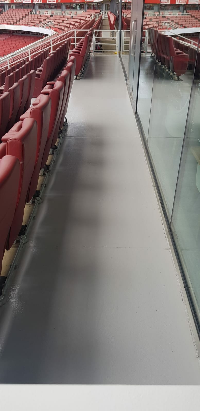 The client needed a concrete floor paint for a Premiership Football Club. Grey Two-Pack Epoxy Floor Paint was required, along with a non-slip overcoating finish.